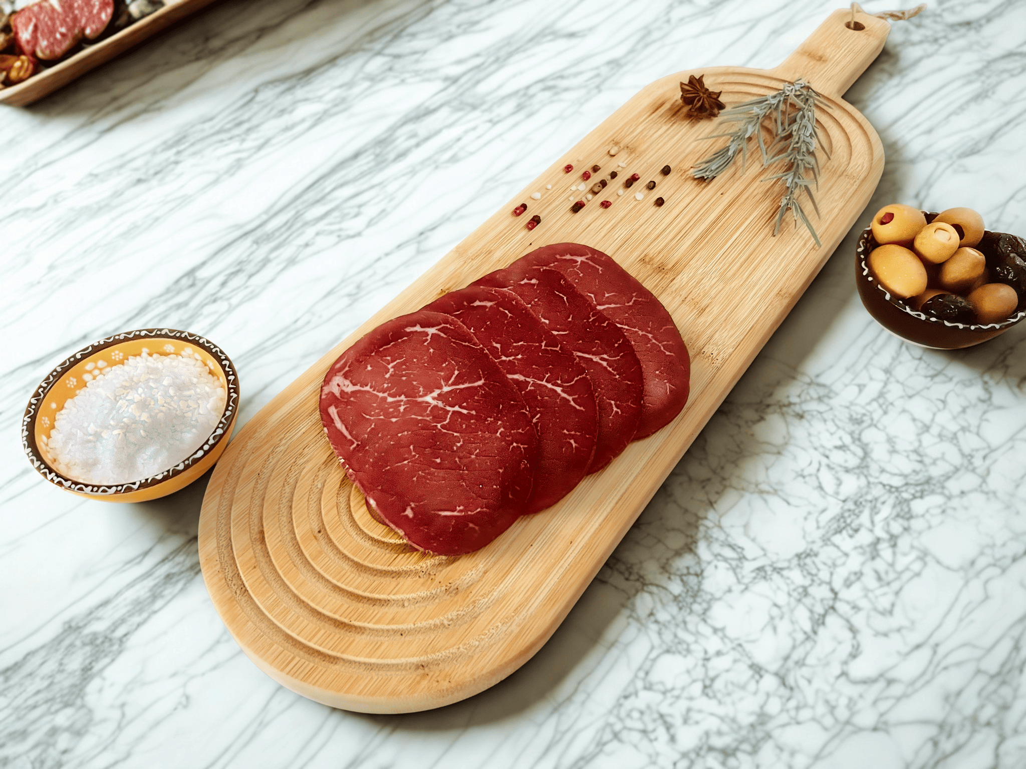 Affinée selon un savoir-faire traditionnel des Alpes italiennes, cette bresaola halal se distingue par sa finesse, sa tendreté et ses arômes délicatement équilibrés. Élaborée à partir de viande de bœuf sélectionnée, elle offre une texture fondante et un goût noble qui séduira les amateurs de charcuterie légère et raffinée.